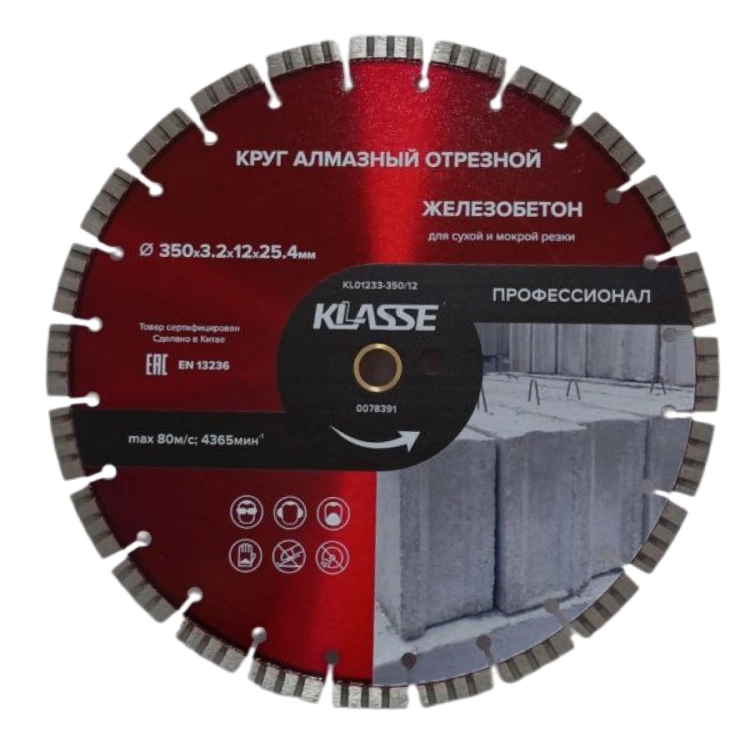 ПроизводителиКруг алмазный турбо-сегмент 350х3.2х12х25.4/20 мм ЖЕЛЕЗОБЕТОН "Профессионал" (KL01233-350/12) KLASSE