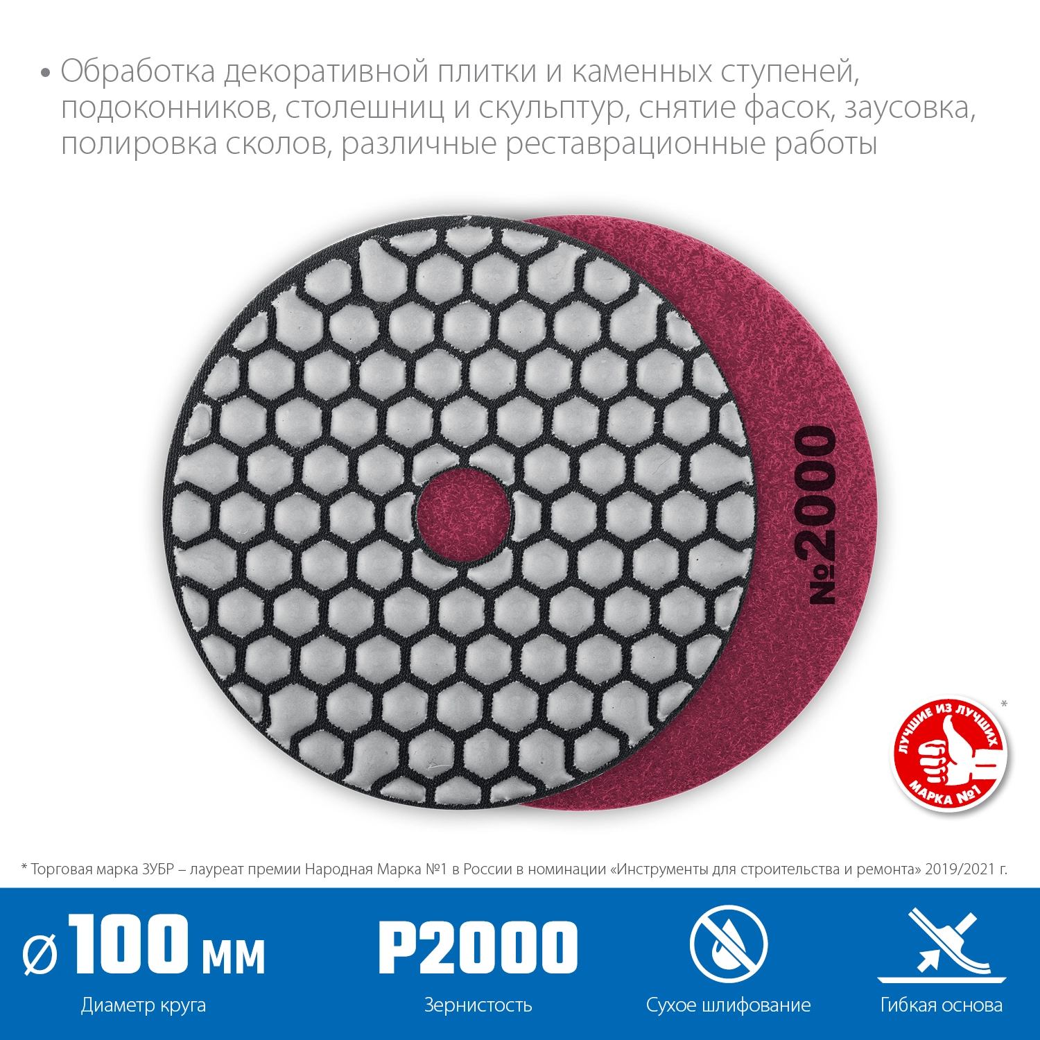 ПроизводителиКруг гибкий шлифовальный (черепашка) д=100мм №2000, сухое шлиф. (29868-2000) ЗУБР