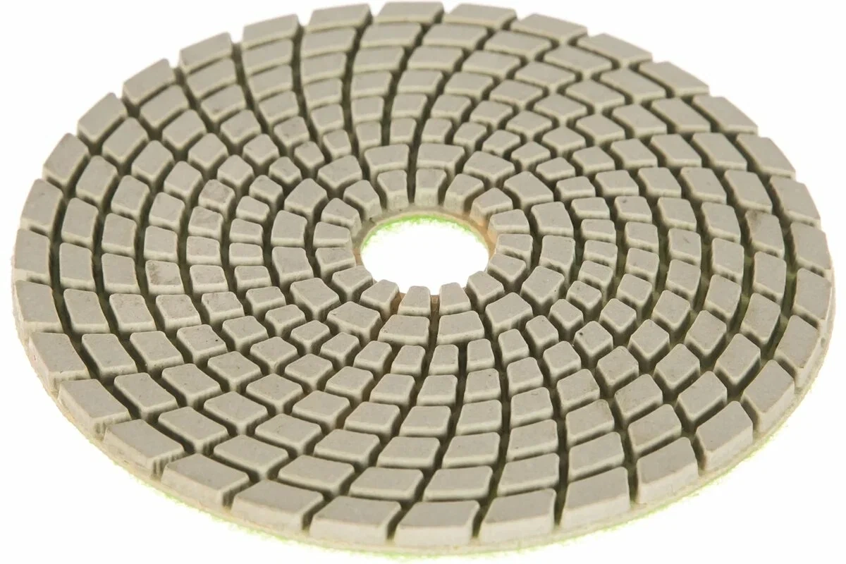 Гибкий шлифовальный круг (АГШК, "черепашка") Trio-Diamond 340050 диаметром 100 мм и зернистостью №50 предназначен для мокрой шлифовки и полировки различных видов камня и бетона.Зернистость №50 является достаточно грубой и применяется на начальных этапах обработки, когда необходимо снять значительный слой материала или выровнять поверхность перед использованием кругов с более мелкой зернистостью.Крепление: Ворсовая подложка (липучка, Velcro) для установки на опорную тарелку.Производитель:
