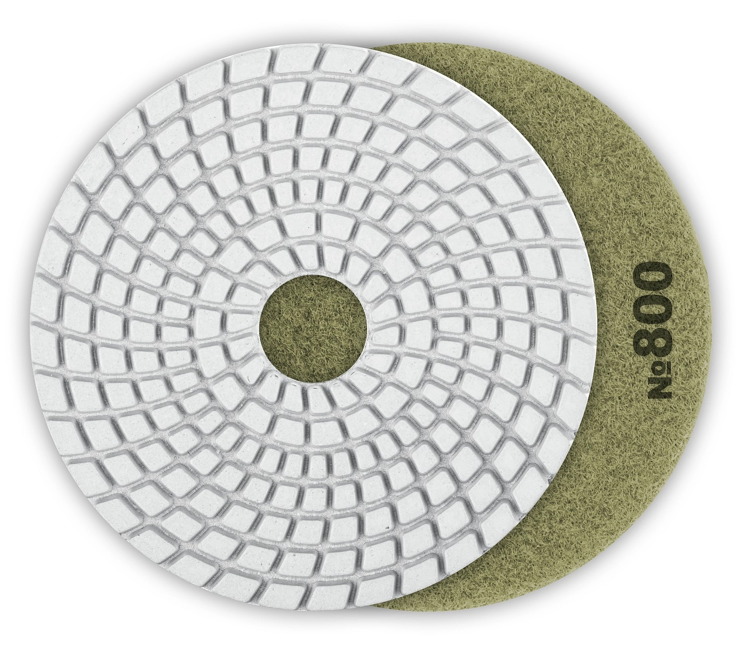 Для шлифовки и полировки изделий из натурального и искуственного камня, керамогранита, гранита, мрамора с применением водяного охлаждения. Используется на ручном электроинструменте (УШМ, полировальные машины, дрели) с насадкой адаптером под липучку Velcro.