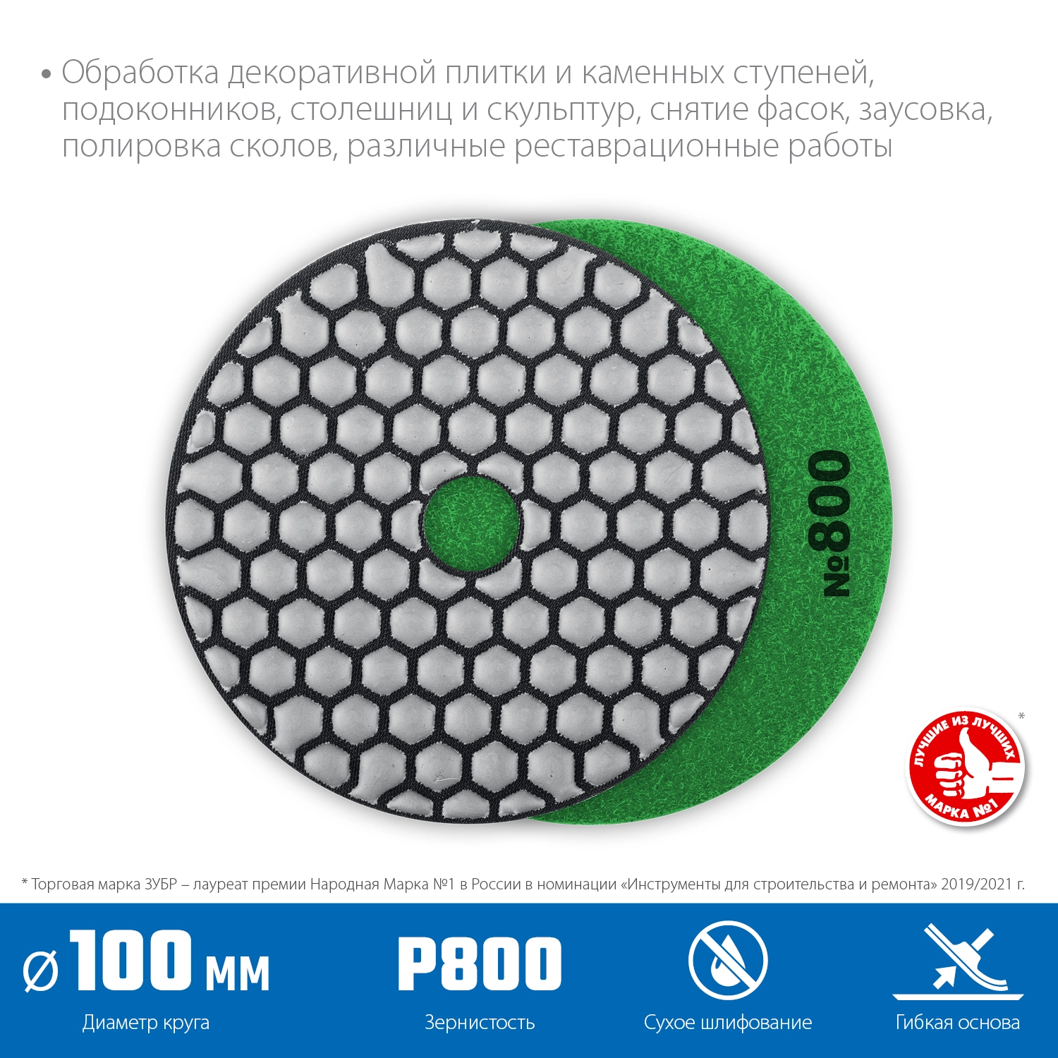 ПроизводителиКруг гибкий шлифовальный (черепашка) д=100мм №800, сухое шлиф. (29868-800) ЗУБР