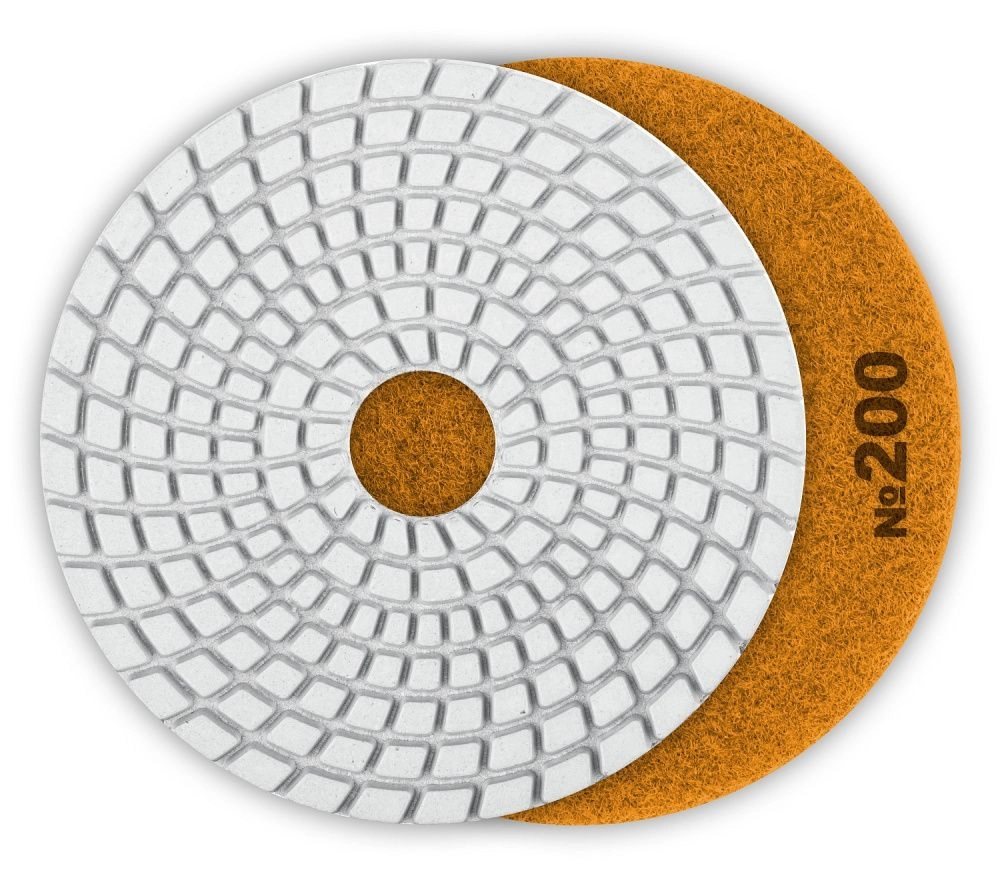 Для шлифовки и полировки изделий из натурального и искуственного камня, керамогранита, гранита, мрамора с применением водяного охлаждения. Используется на ручном электроинструменте (УШМ, полировальные машины, дрели) с насадкой адаптером под липучку Velcro.