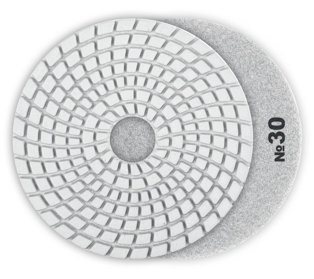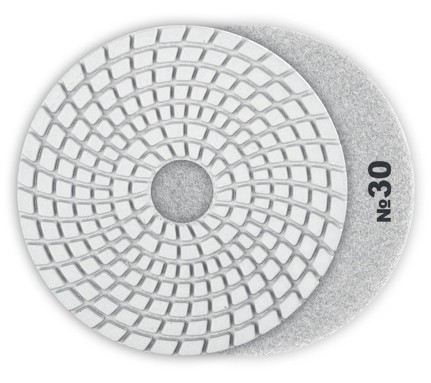 Для шлифовки и полировки изделий из натурального и искуственного камня, керамогранита, гранита, мрамора с применением водяного охлаждения. Используется на ручном электроинструменте (УШМ, полировальные машины, дрели) с насадкой адаптером под липучку Velcro.