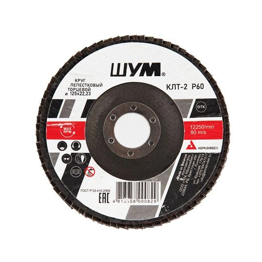 ПроизводителиКруг лепестковый 125х22.23 мм для металла, А60, тип КЛТ2 "ШУМ"