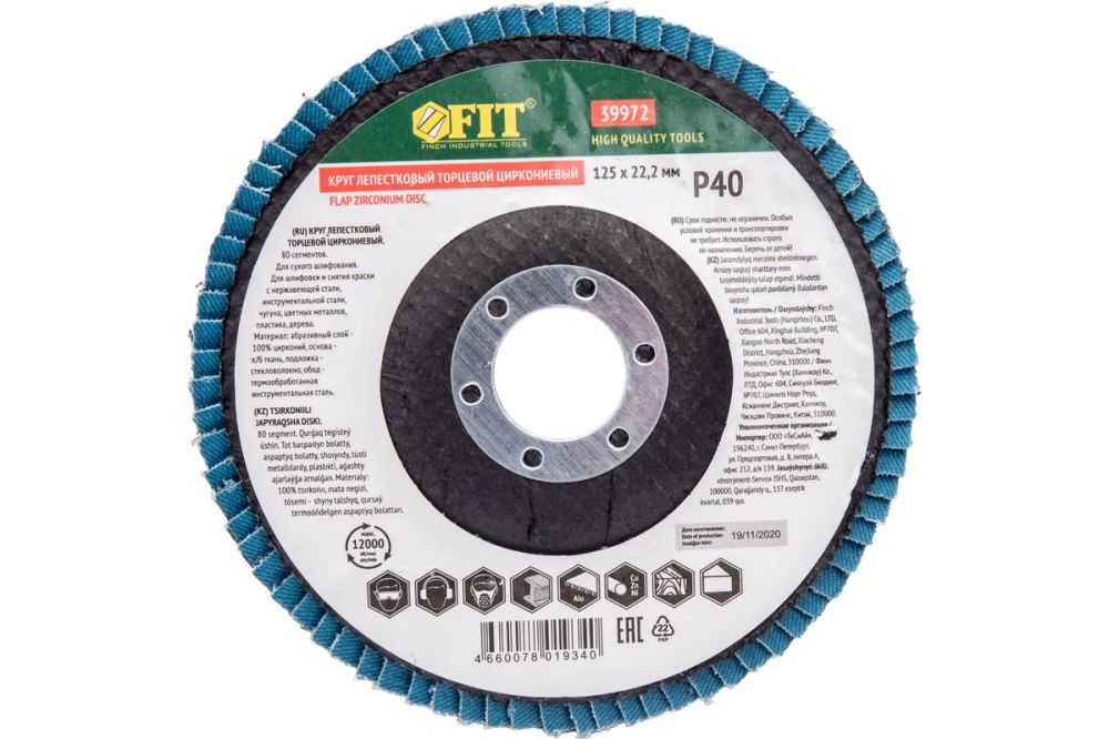 ПроизводителиКруг лепестковый 125х22.23 мм для металла, нерж. стали, Р40, тип КЛТ1 (плоский)(F_39972) FIT