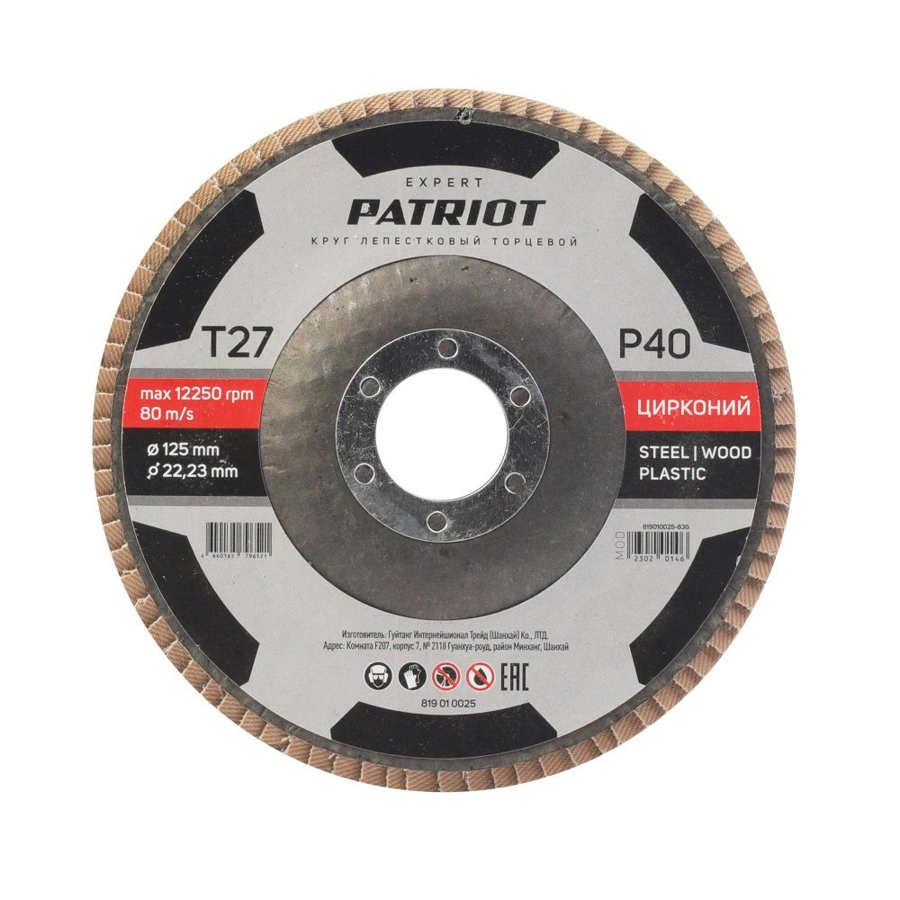 ПроизводителиКруг лепестковый 125х22.23 мм для металла, нерж. стали, цирконий, Р40, тип КЛТ1 PATRIOT / EXPERT