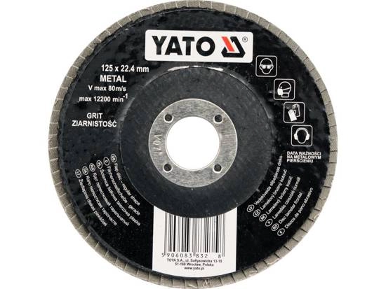 ПроизводителиКруг лепестковый 125х22.23 мм для металла, Р100, тип КЛТ1 (плоский)(YT-83275) YATO