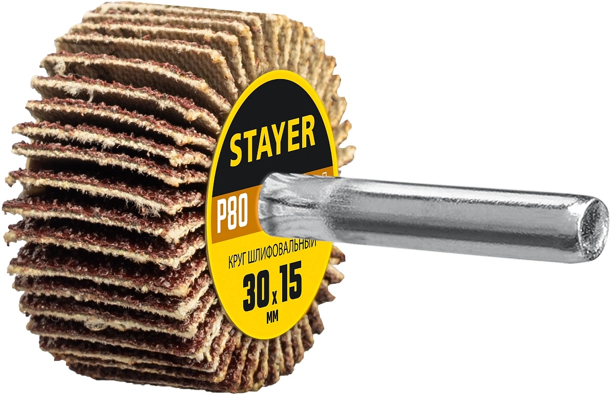 ПроизводителиКруг лепестковый на шпильке P80, 30х15 мм, тип КЛО (36606-080) STAYER