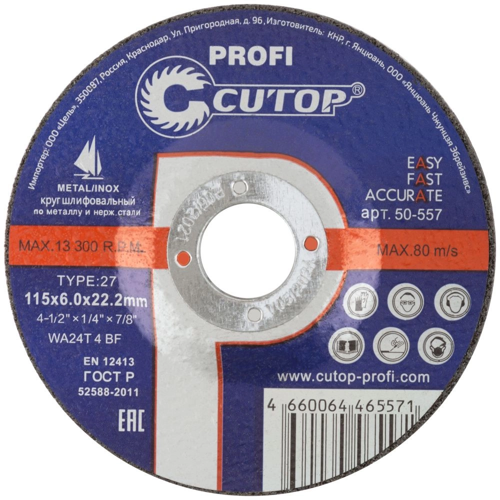 ПроизводителиКруг обдирочный 115х6.0х22.23 мм для металла и нерж. стали PROFI (F_50-557) CUTOP