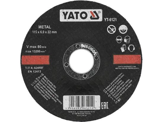 ПроизводителиКруг обдирочный 115х6.0х22.23 мм для металла (YT-6121) YATO