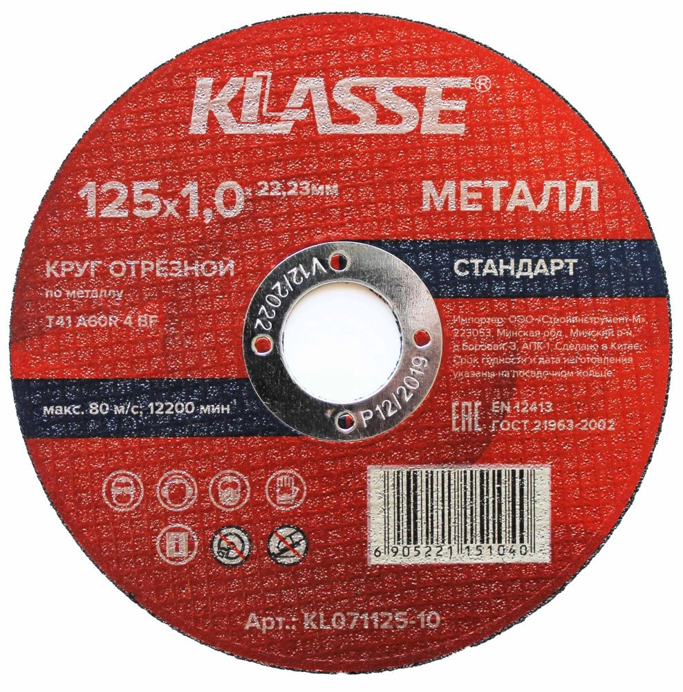 ПроизводителиКруг отрезной 125х1.0х22.23 мм для металла и нерж. стали "Профи", 10шт. (KL072125-10(10)) KLASSE