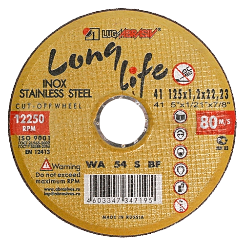 ПроизводителиКруг отрезной 125х1.0х22.23 мм для нерж. стали "Long life" ОАО "ЛАЗ"