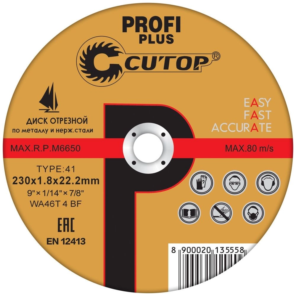 ПроизводителиКруг отрезной 230х1.8х22.23 мм для металла и нерж. стали PROFI PLUS (40000т) CUTOP