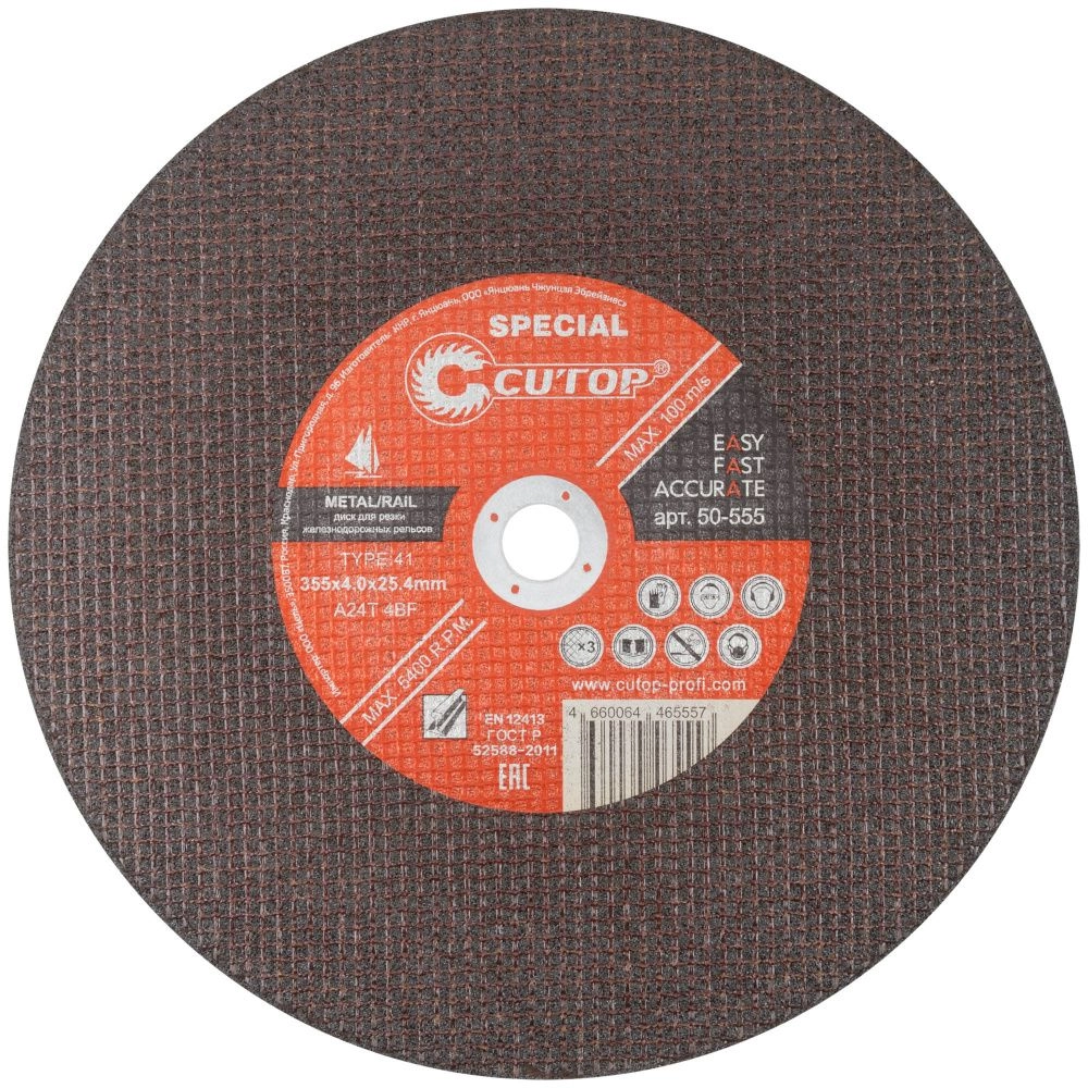 ПроизводителиКруг отрезной 355х4.0х25.4 мм для металла, ж/д рельс SPECIAL (50-555) CUTOP