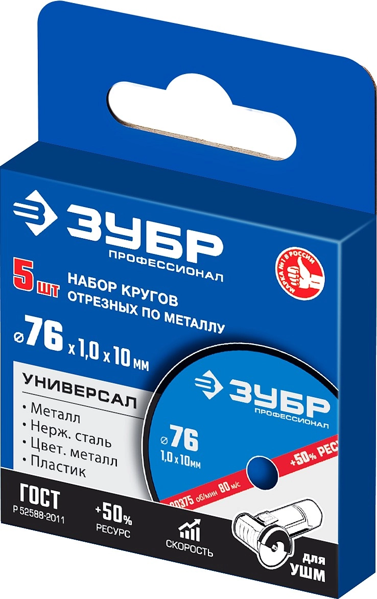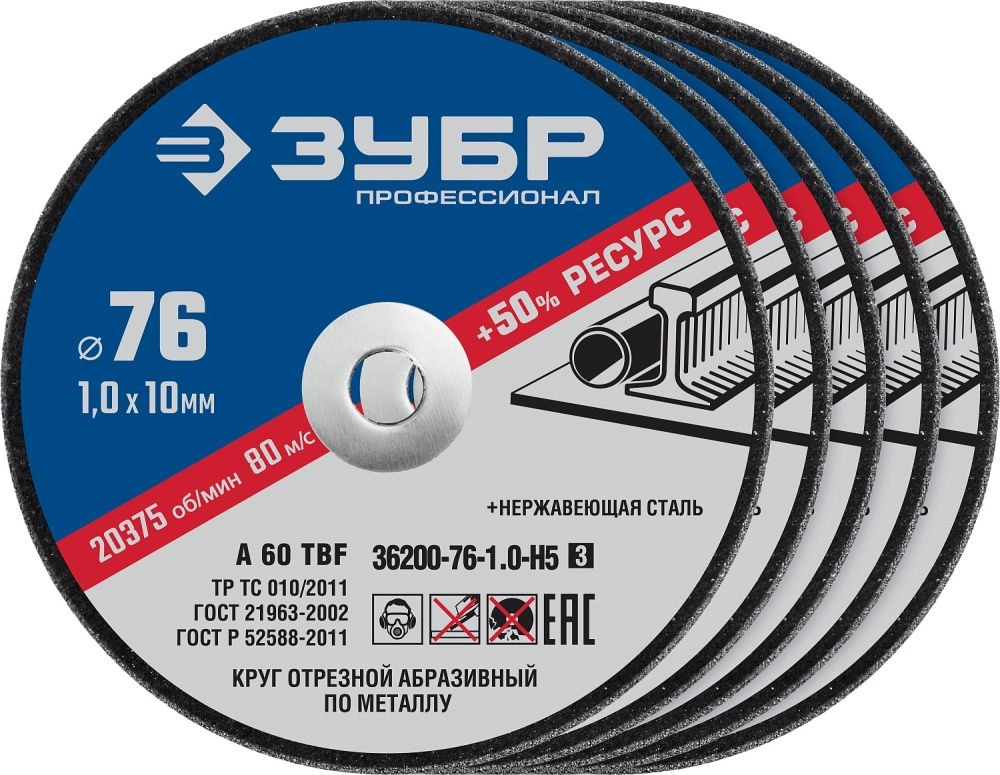 ПроизводителиКруг отрезной 76х1.0х10.0 мм для металла, 5шт. "X-2" (36200-76-1.0-H5_z03) ЗУБР