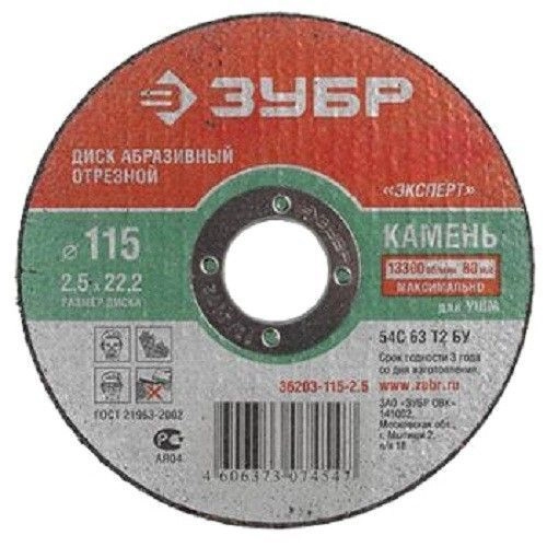 ПроизводителиКруг отрезной 200х2.5х22.23 мм по камню (36203-200-2.5_G) ЗУБР