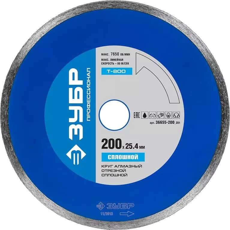 ПроизводителиТ-800 Сплошной 200 мм, диск алмазный отрезной сплошной по керамограниту, мрамору, плитке, ЗУБР Профе
