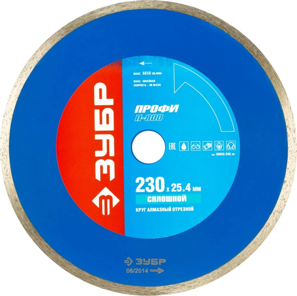 ПроизводителиТ-800 Сплошной 230 мм, диск алмазный отрезной сплошной по керамограниту, мрамору, плитке, ЗУБР Профе