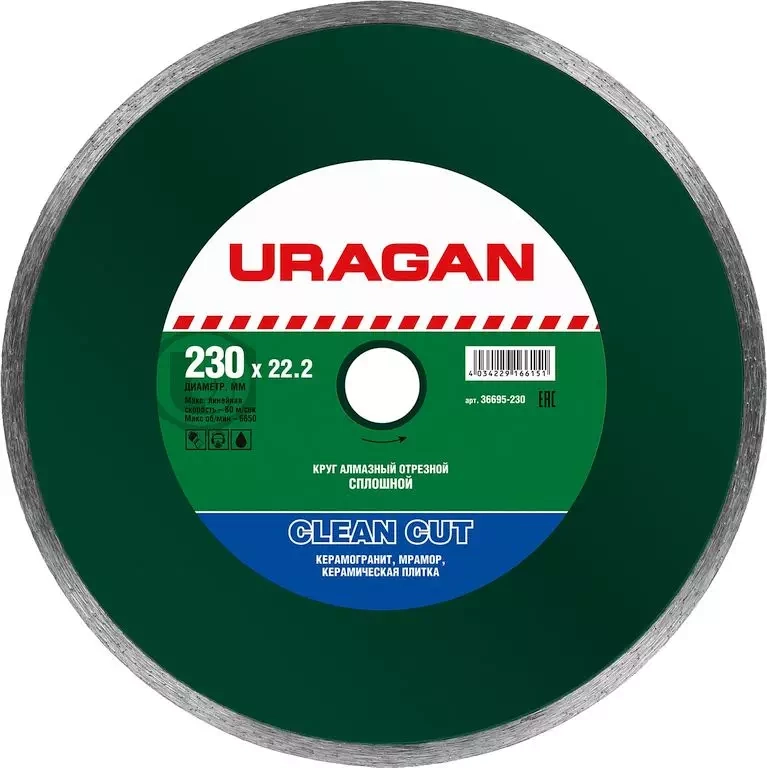 ПроизводителиКруг алмазный сплошной 230х22,23мм (36695-230) URAGAN