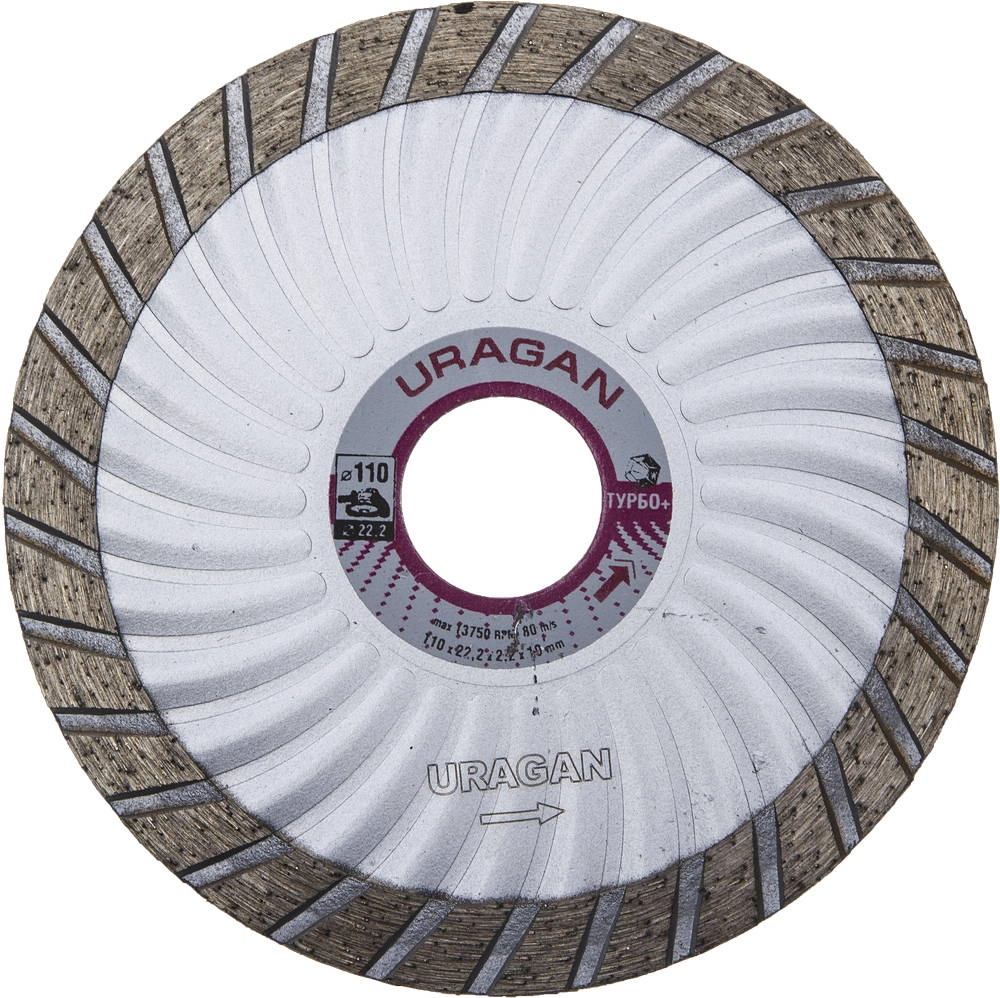 ПроизводителиТУРБО-Плюс 110 мм, диск алмазный отрезной сегментированный эвольвентный по бетону, камню, кирпичу, U