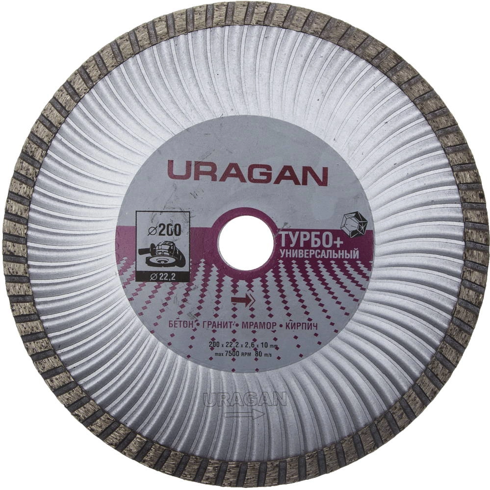 ПроизводителиТУРБО-Плюс 200 мм, диск алмазный отрезной сегментированный эвольвентный по бетону, камню, кирпичу, U