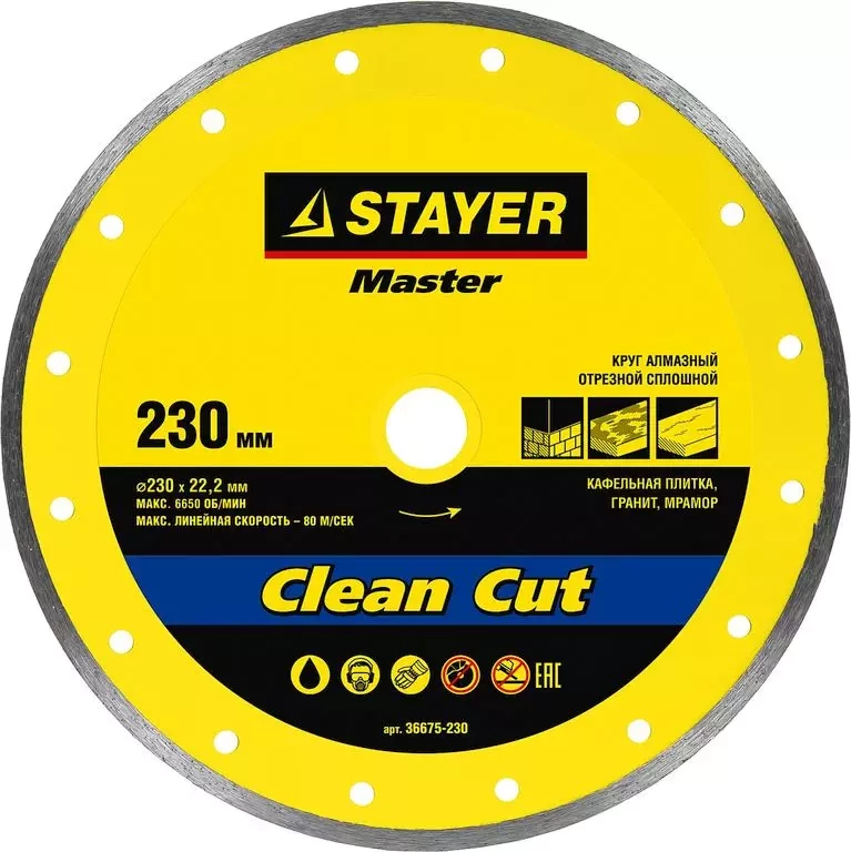 ПроизводителиКруг алмазный сплошной 230х7х22.23 мм "MASTER" (36675-230) STAYER