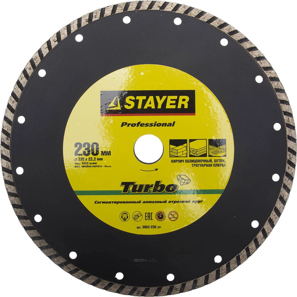 ПроизводителиTURBO 230 мм, диск алмазный отрезной сегментированный по бетону, кирпичу, плитке, STAYER Professiona