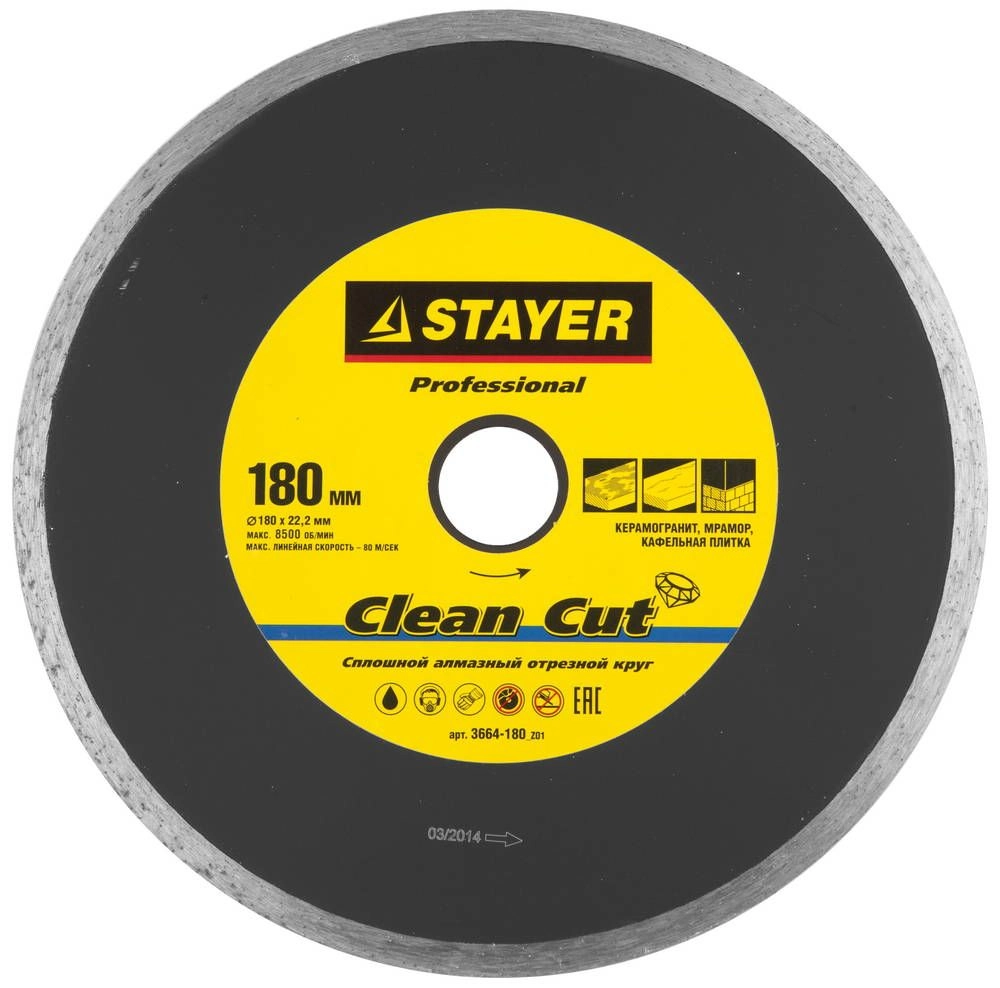 ПроизводителиКруг алмазный сплошной 180х22,23мм "PROFESSIONAL" (3664-180_z01) STAYER