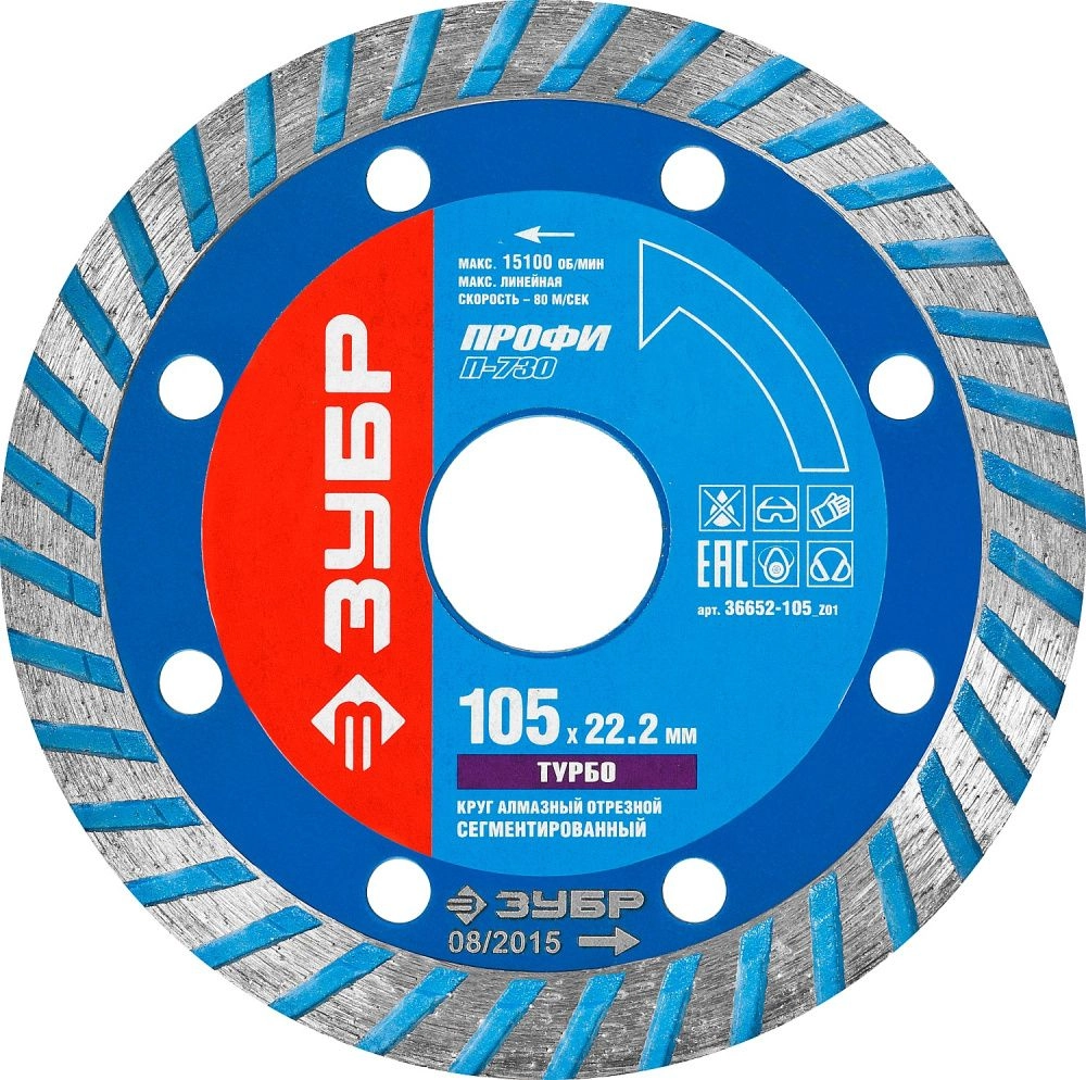 ПроизводителиКруг алмазный турбо 105х10х22.23 мм Т-730 ТУРБО "Профессионал" (36652-105_z01) ЗУБР