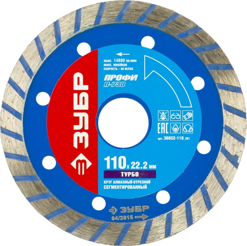 ПроизводителиТ-730 ТУРБО 110 мм, диск алмазный отрезной по бетону, кирпичу, граниту, ЗУБР Профессионал