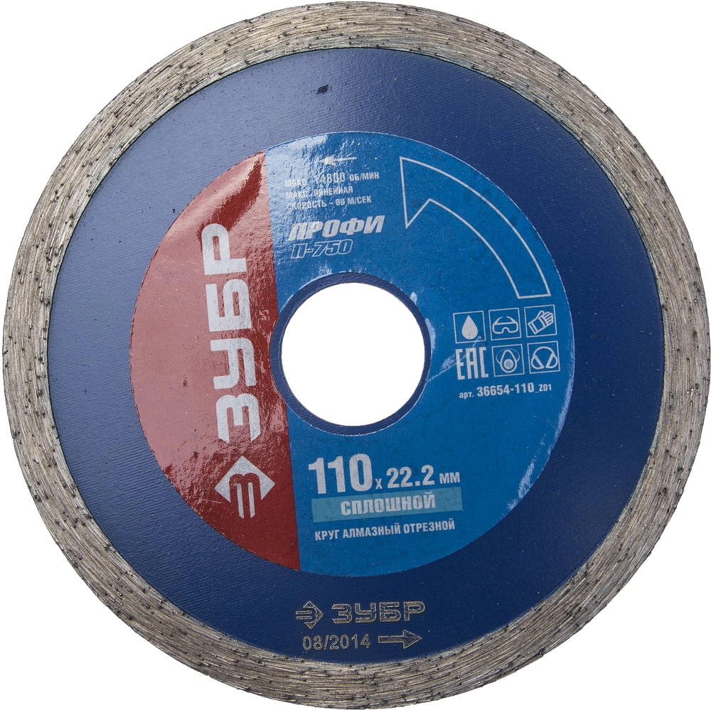 ПроизводителиТ-750 СПЛОШНОЙ 110 мм, диск алмазный отрезной сплошной по керамограниту, мрамору, плитке, ЗУБР Профе