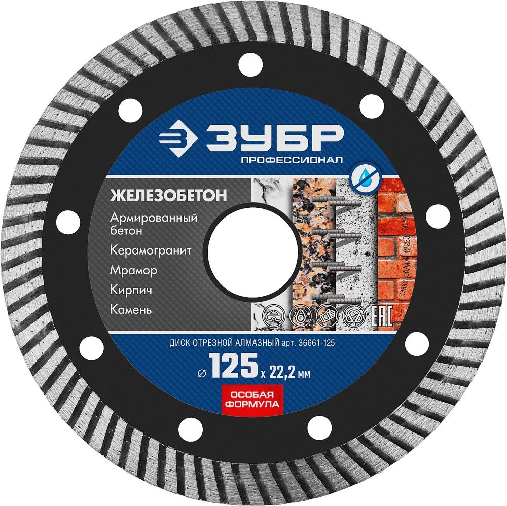 ПроизводителиКруг алмазный турбо 125х10х22.23 мм ЖЕЛЕЗОБЕТОН (36661-125) ЗУБР