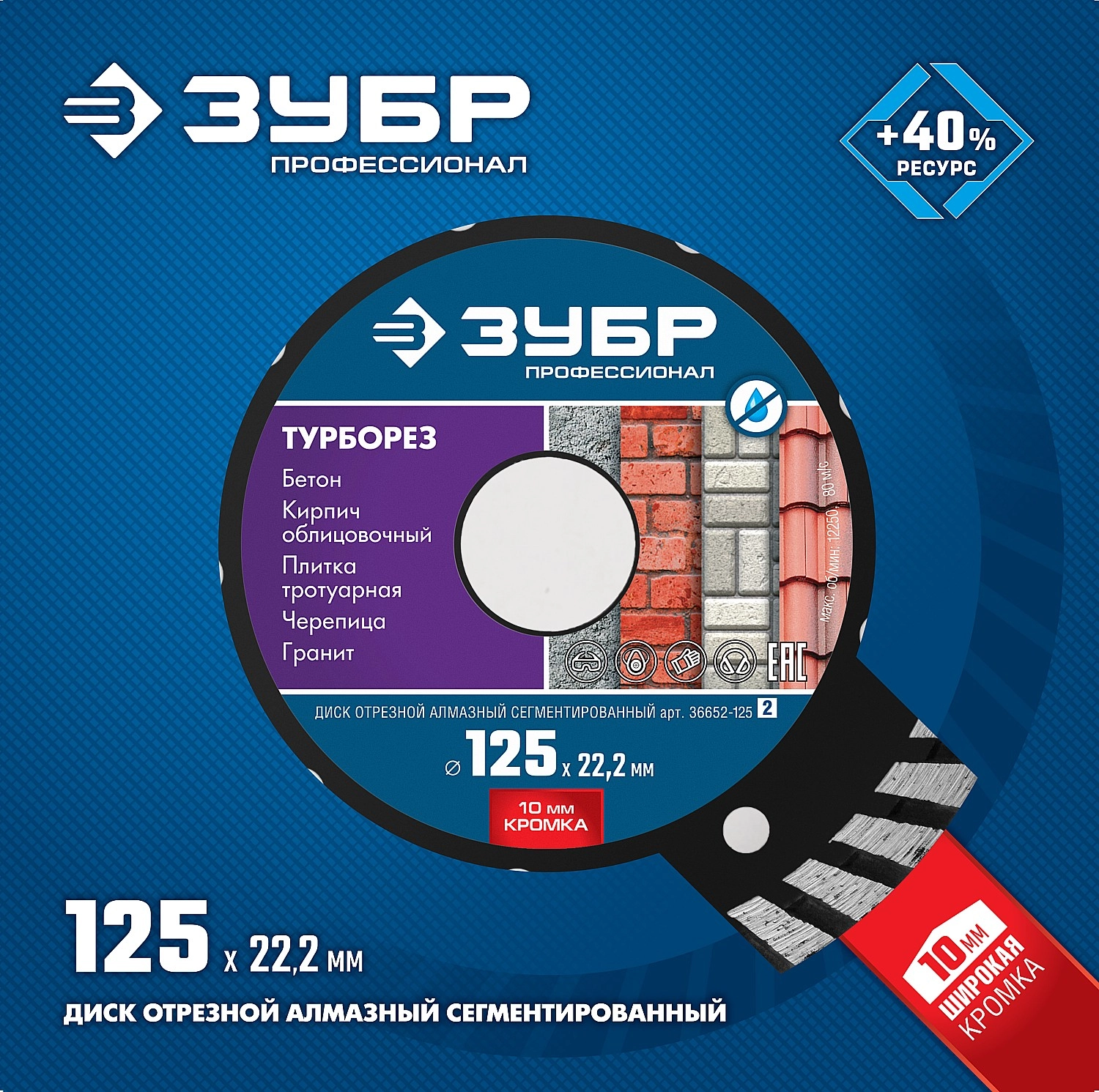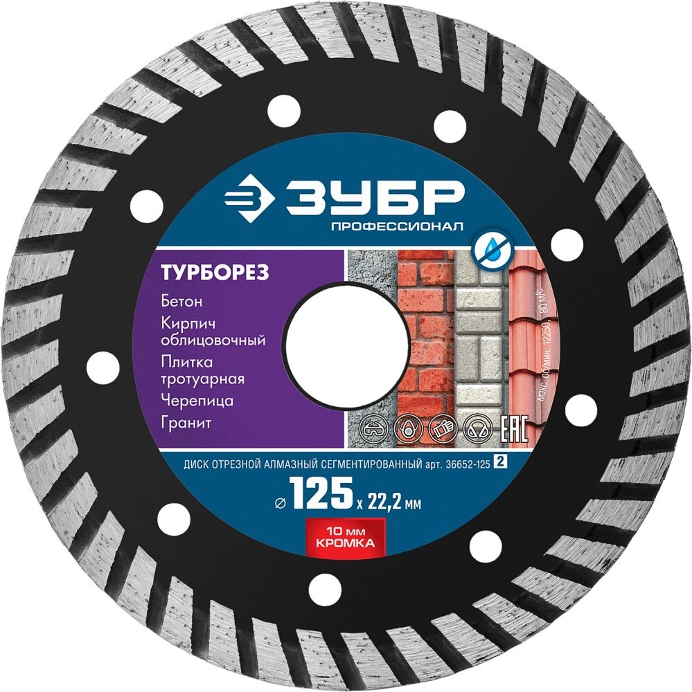 ПроизводителиКруг алмазный турбо 125х2.4х10x22.23 мм "ТУРБОРЕЗ"" Профессионал" (36652-125_z02) ЗУБР