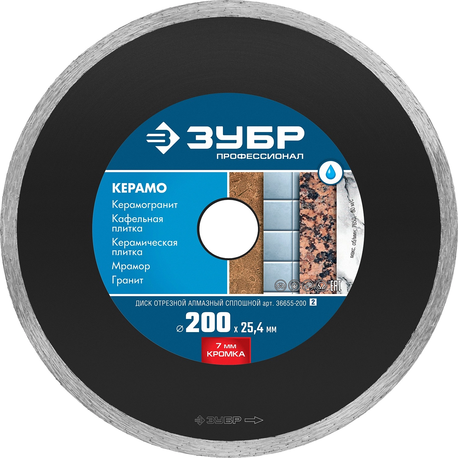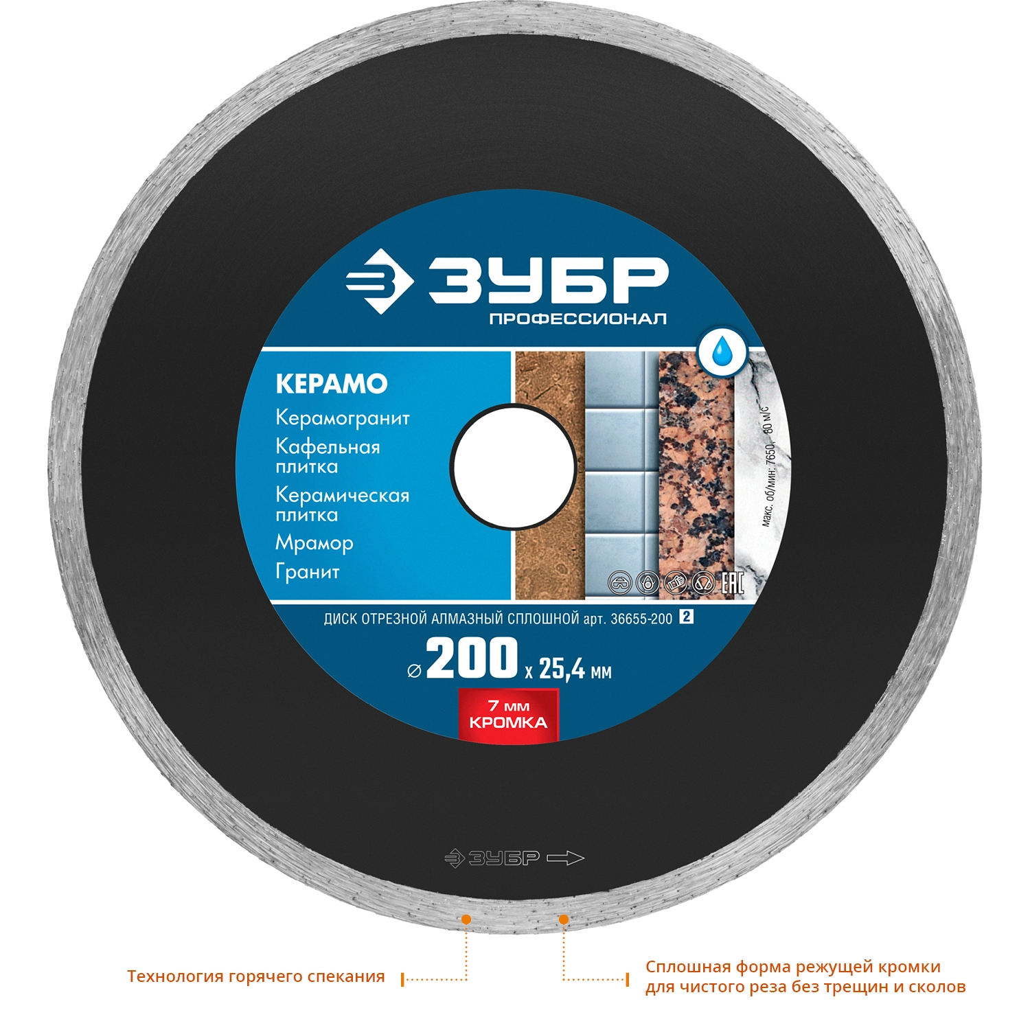 ПроизводителиКруг алмазный сплошной 200х2.2х7х25.4мм "КЕРАМО-25" "ПРОФЕССИОНАЛ" (36655-200_z02) ЗУБР