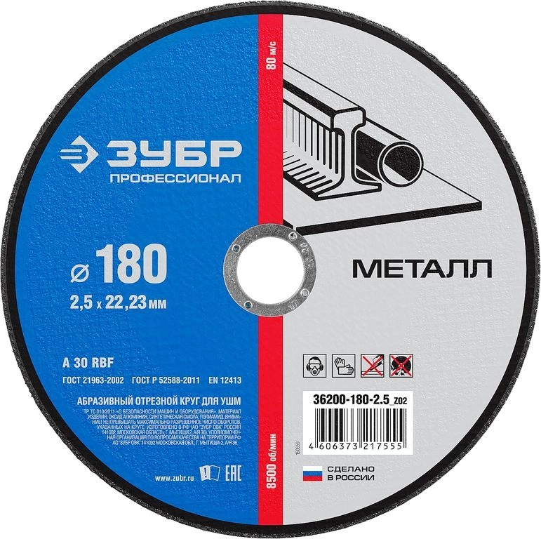 ПроизводителиКруг отрезной 180х2.5х22.23 мм для металла (36200-180-2.5_z02) ЗУБР