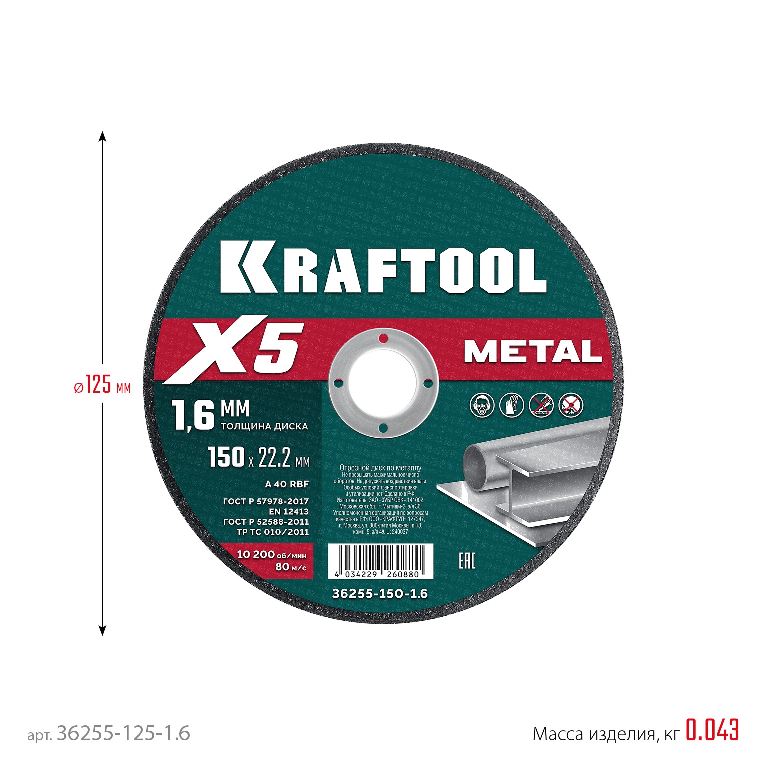 ПроизводителиКруг отрезной по металлу для УШМ X5 Metal 125x1.6мм (36255-125-1.6) KRAFTOOL