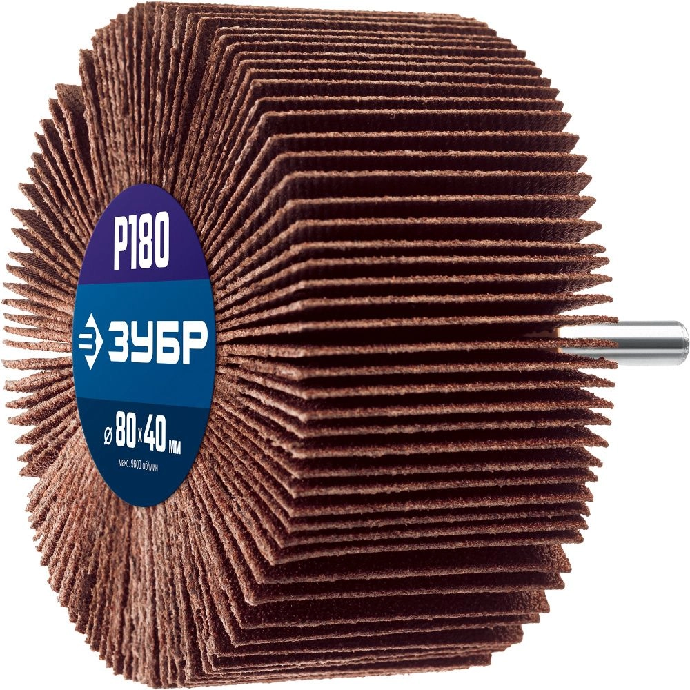 ПроизводителиКруг шлифовальный лепестковый d 80х40мм, P180, на шпильке d 6мм (36604-180_z01) ЗУБР