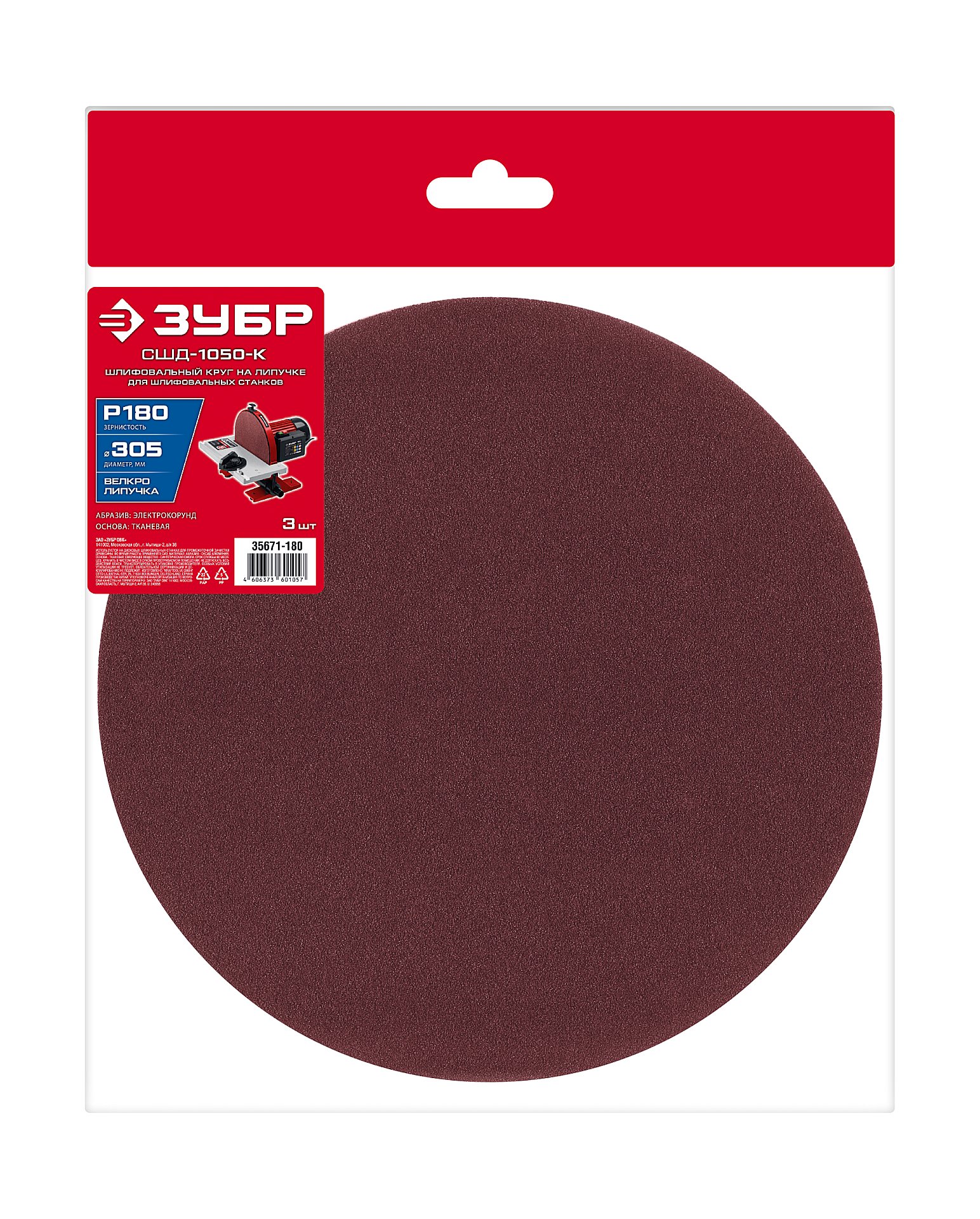 ПроизводителиКруг шлифовальный на липучке СШД-1050-К 305 мм, Р180, 3 шт. (35671-180) ЗУБР