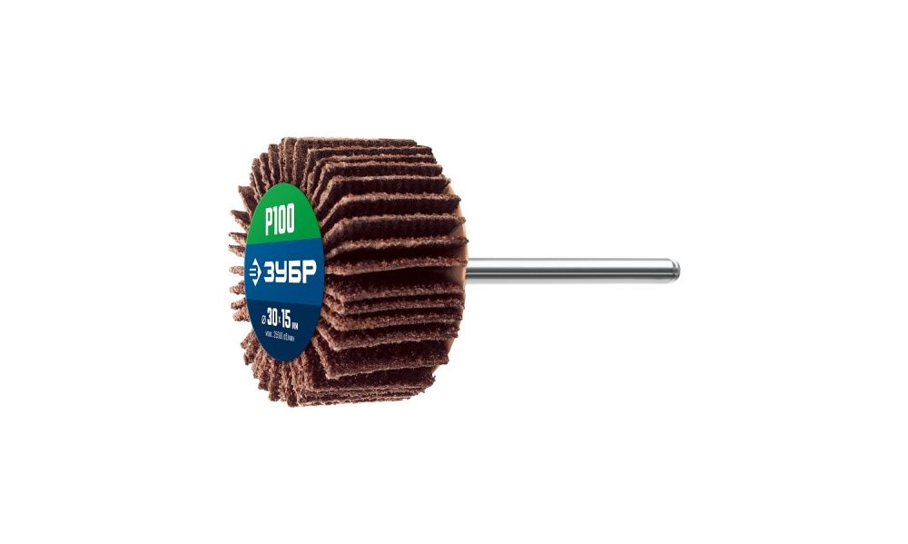 ПроизводителиКруг лепестковый на шпильке P100, 15х30 мм, тип КЛО (36600-100_z01) ЗУБР