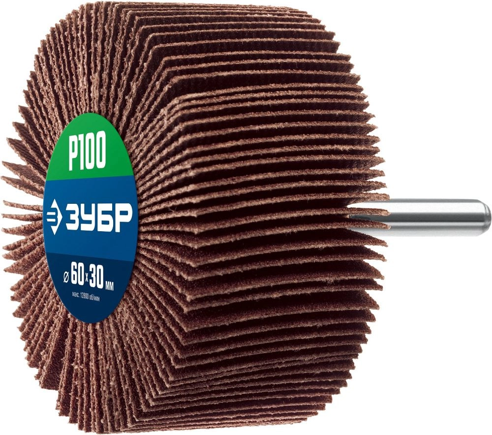 ПроизводителиКруг лепестковый на шпильке P100, 30х60 мм, тип КЛО (36602-100_z01) ЗУБР