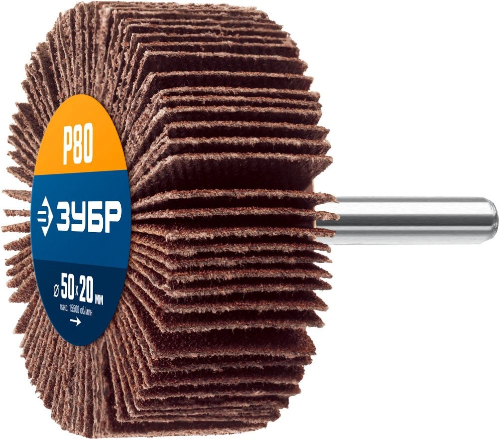 ПроизводителиКруг лепестковый на шпильке P80, 20х50 мм, тип КЛО (36601-080_z01) ЗУБР