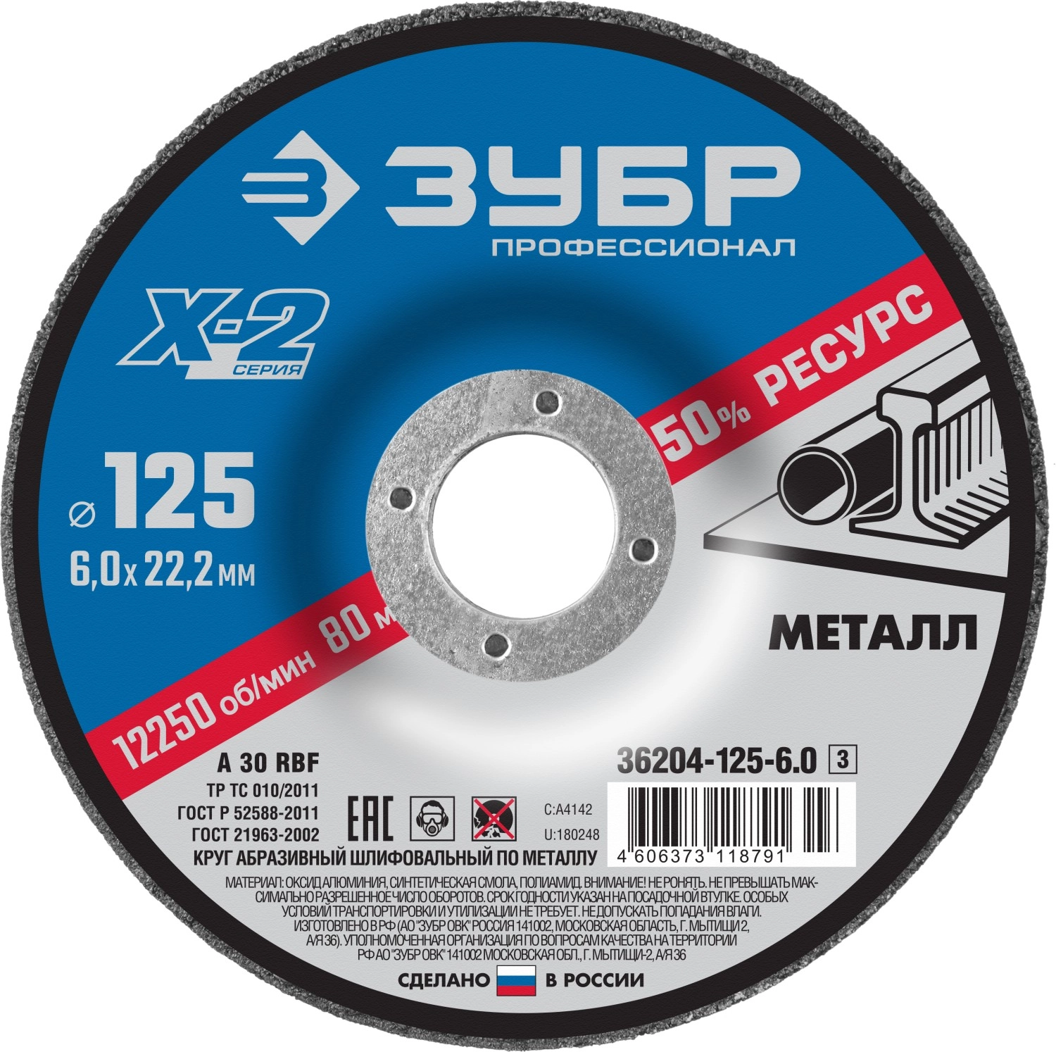 ПроизводителиКруг обдирочный 125х6.0х22.23 мм для металла "Х-2" (36204-125-6.0_z03) ЗУБР