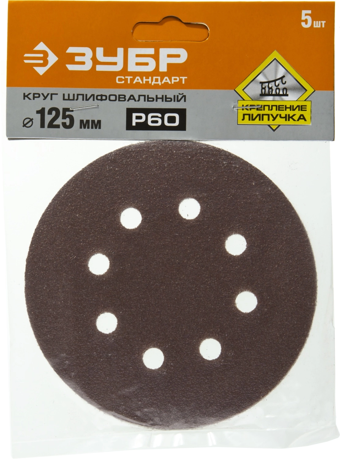 ПроизводителиКруг шлифовальный д=125 мм, 8 отв., зерно 60, велкро осн., 5 шт. (35350-125-060) ЗУБР