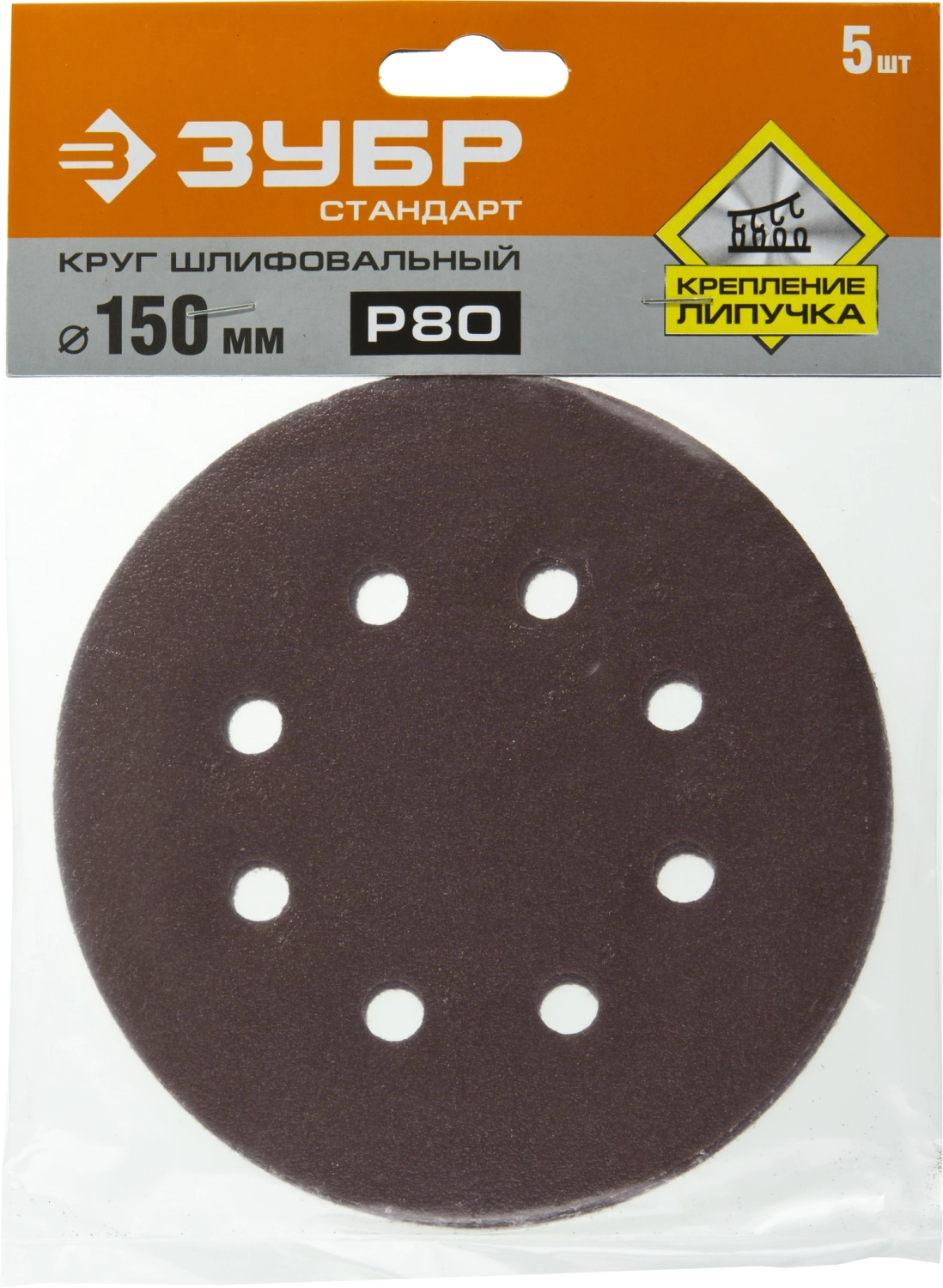 ПроизводителиКруг шлифовальный д=150 мм, 6 отв., зерно 80, велкро осн., 5 шт. (35350-150-080) ЗУБР