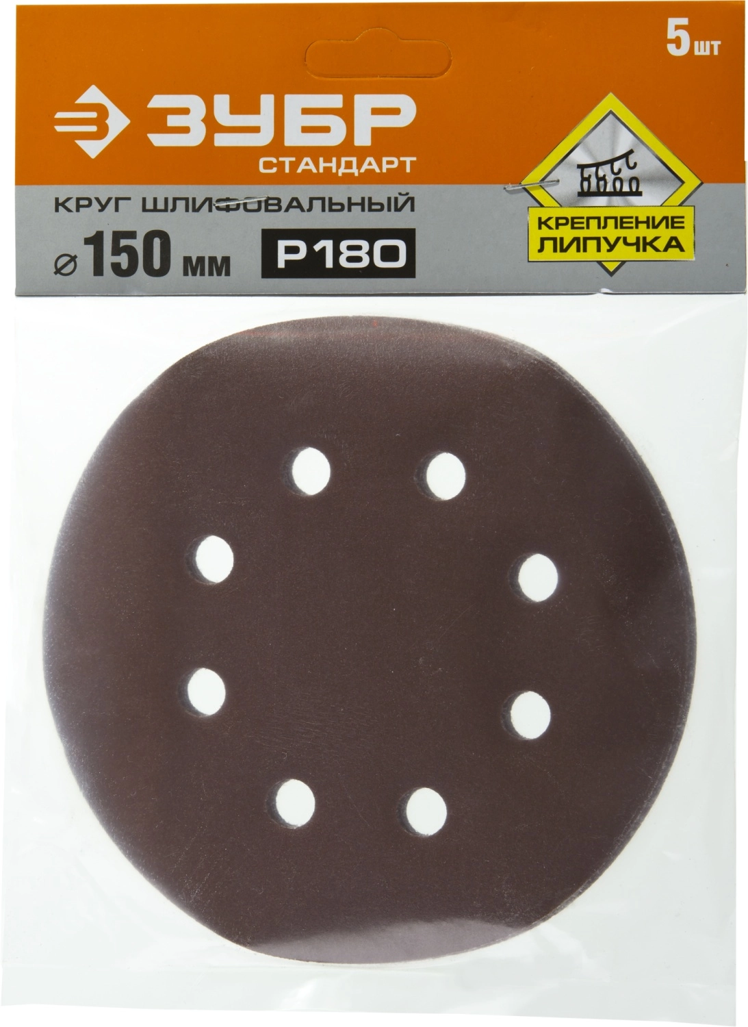 ПроизводителиКруг шлифовальный д=150 мм, 6 отв., зерно 180, велкро осн., 5 шт. (35350-150-180) ЗУБР