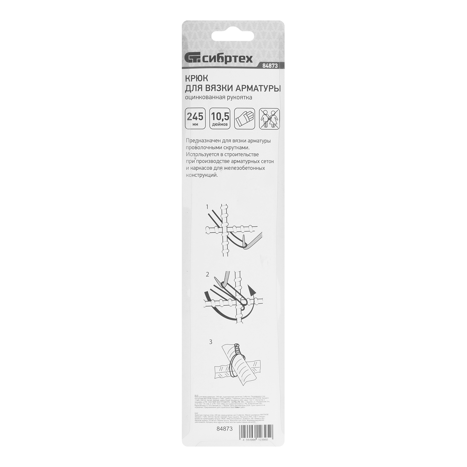 ПроизводителиКрюк для вязки арматуры, 245 мм, оцинкованная рукоятка (84873) Сибртех