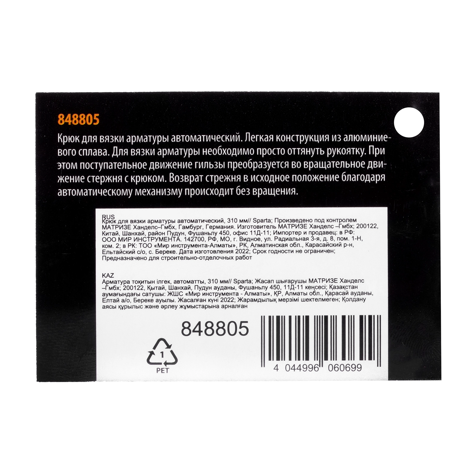 ПроизводителиКрюк для вязки арматуры, 310мм, автоматический (848805) Sparta