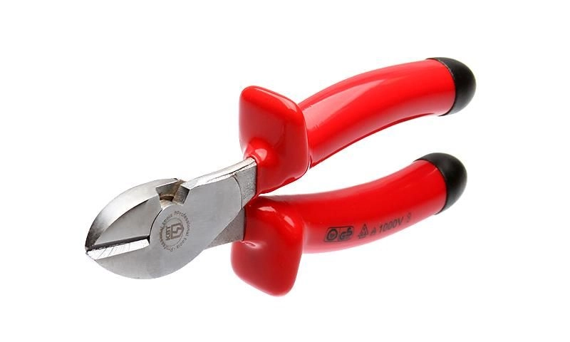 Характеристики КВТ 70359: Для работы под напряжением до 1000 В Материал рукояток: двухслойный диэлектрический пластизоль. Внутренняя изоляция – желтого цвета, внешний слой изоляции – красного цвета Режущие кромки дополнительно закалены токами высокой частоты. HRC 62 Двухсторонняя диагональная заточка лезвий Резка мягкой проволоки до 4 мм и твердой проволоки до 2.5 мм Материал рабочей части: хром-ванадиевая сталь Обработка поверхности: матовое никелирование Характеристики