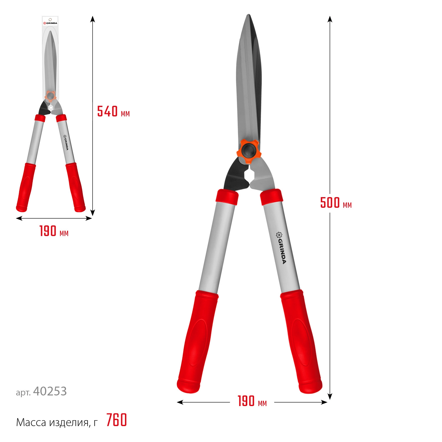 ПроизводителиКусторез 540мм, закаленные лезвия, антикор. покрытие, стальные рукоятки (40253_z02) GRINDA