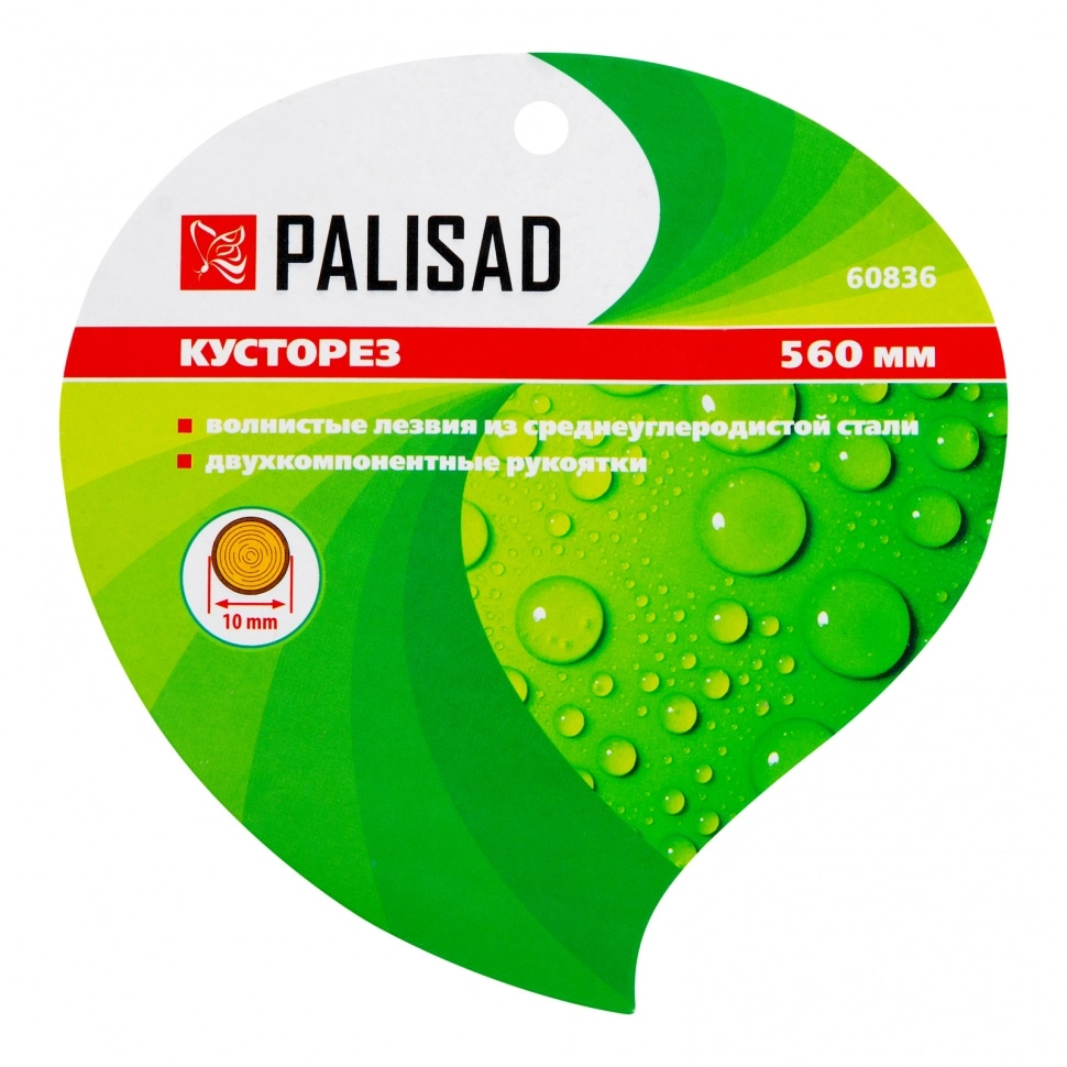 Кусторез Palisad 60836 длиной 560 мм, с волнистыми лезвиями и двухкомпонентными рукоятками, позволяет произвести омолаживающую обрезку молодых отростков толщиной до 10 мм.